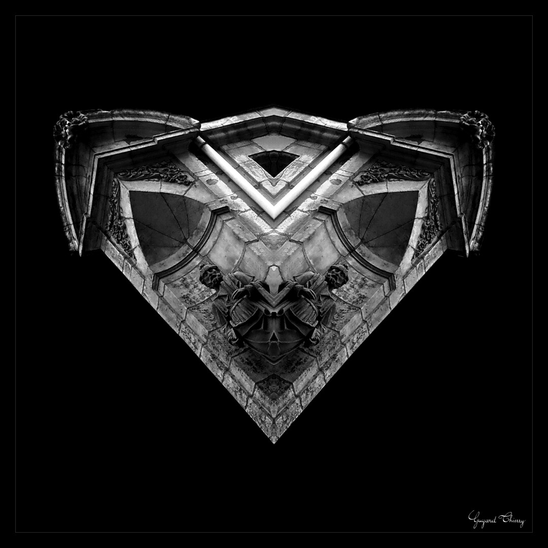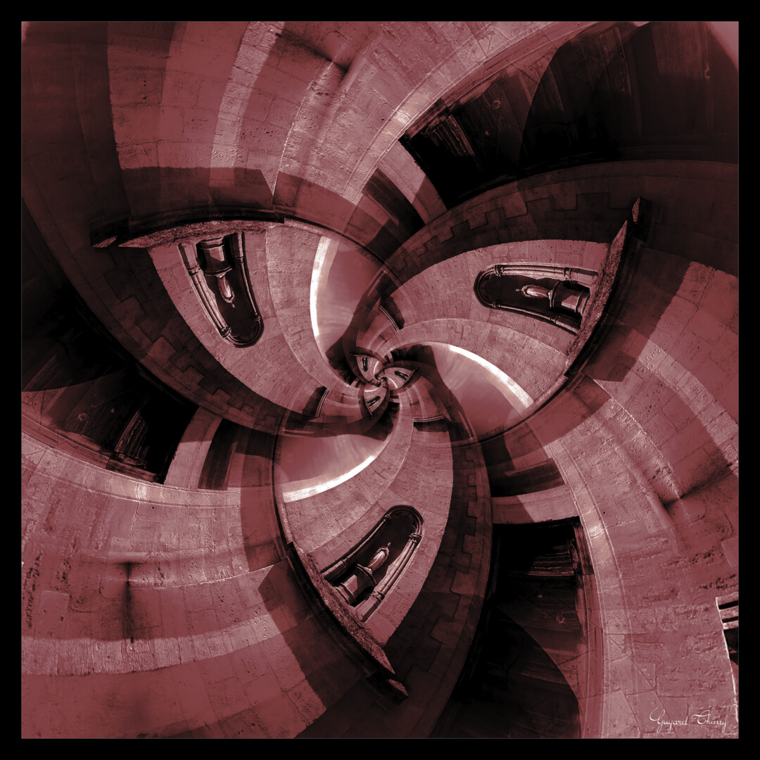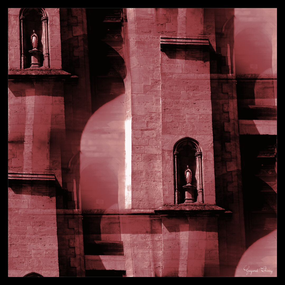 De la même façon, c’est en touriste que j’ai parcouru Bordeaux en déambulant, en flânant et en collectant des prises de vues qui ont interpellé ma sensibilité. J’ai retravaillé ces photos ainsi collectées selon mon inspiration, mais aussi un peu à la manière de Stendhal, soit « à l’encre du Rouge et du Noir« , mais graphiquement. Ceci comme écho au Bordeaux visité lors de mon enfance. En effet, de cette première rencontre enfantine avec la ville, je retiens le vin de Bordeaux loué par les adultes et la noirceur des façades de la ville à l’époque. Aujourd’hui, je la perçois plutôt telle une élégante parée de velours pourpre et noir.